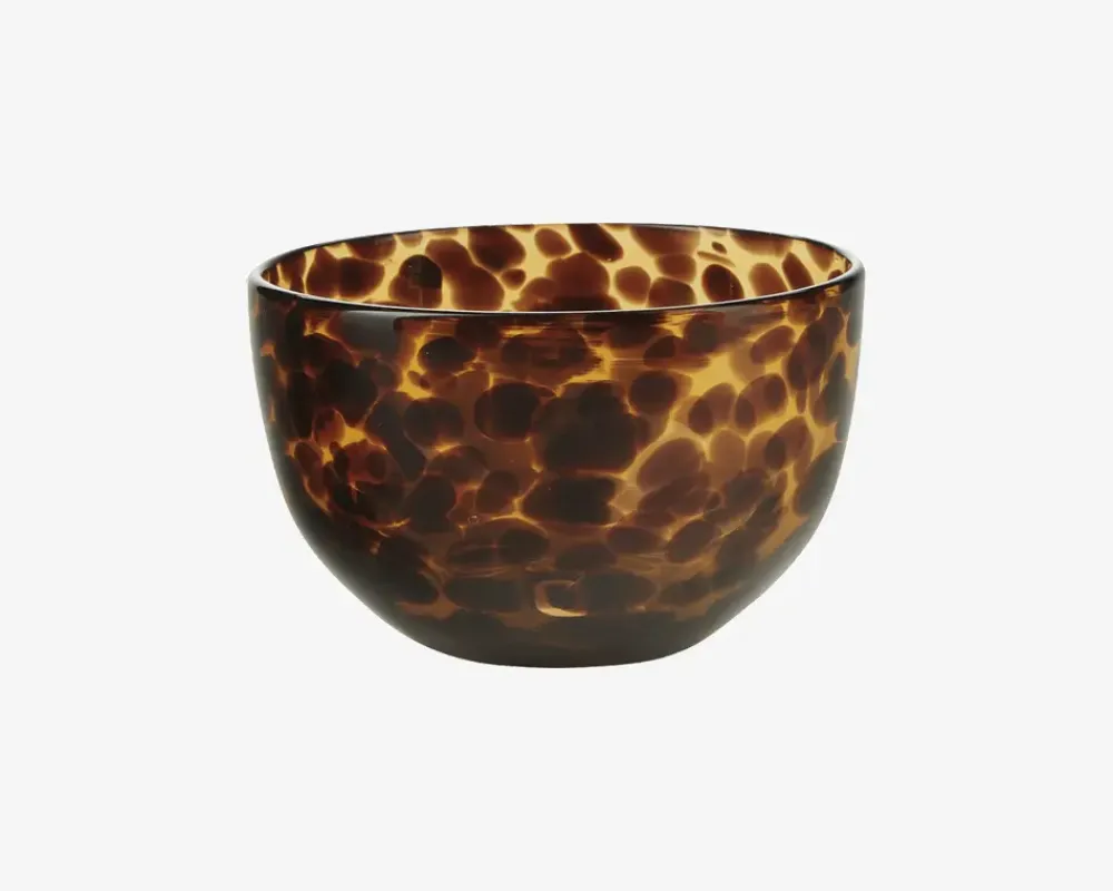Skål i mundblæst glas med mønster i gyldne nuancer. Skålen er en del af en serie som fremstilles i forskellige farver, ligesom der findes drikkeglas i serien. Skålen kan både bruges til morgenmad eller snacks, eller som indretning i hjemmet.Skålen tåler opvaskemaskine.• Mål i cm. : H.4,5 x Ø.11,5• Materiale: Glas• Farve: Brun•Kan vaskes i opvaskemaskinen
