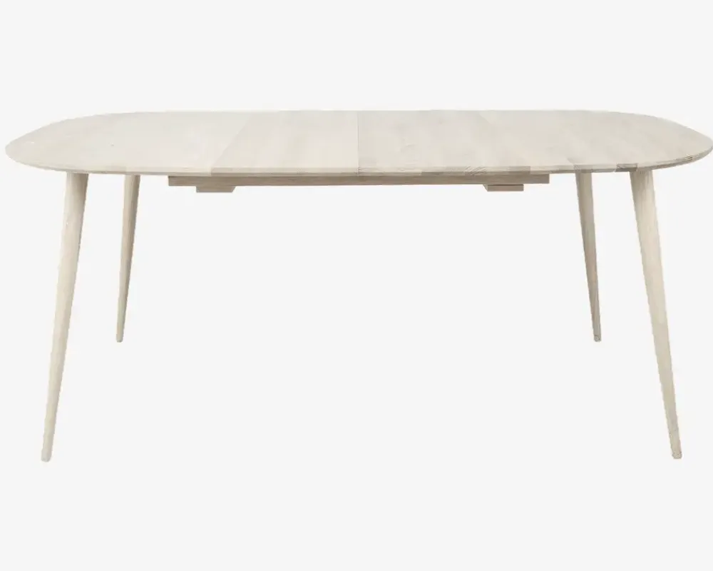 Shape® er en bordserie som Daells Bolighus har udviklet sammen med en af vores dygtige danske leverandører. Du kan selv sammensætte dit bord som du ønsker, og kan vælge bordplader med udtræk, til spiseborde i forskellige størrelser og træsorter, derudover kan du selv vælge om du ønsker træben eller stålben. Bordserien findes desuden også med bordplader uden udtræk som er velegnet som sofabord, idet du også kan vælge benene i sofabordshøjde. Hele serien er dansk produceret i en meget flot kvalitet, og i høj håndværksmæssig kvalitet.Serien fremstår moderne og tidsløs i designet, og uanset om du vælger bordpladen i massiv træ, eller i laminat kan du til købe ekstra tillægsplader. Alle spisebordsplader leveres som standard med udtræk til 2 ekstra tillægsplader, men hvis du har god plads, eller behov for mange spisende gæster, kan der til begge de ovale bordplader tilkøbes et udtræk, som giver mulighed for op til 4 tillægsplader i bordet. Hvis du vælger denne løsning skal du dog være opmærksom på at magasin funktionen går tabt, og tillægspladerne skal opbevares seperat.Dette Shape® spisebord er fremstillet med en bordplade i massiv bøg og ben i massiv bøg. Bordet måler B.102 x L.180 cm og leveres med et udtræk så du har mulighed for at udvide bordet med 2 tillægsplader, så du kan få et bord der måler B.102 x L.270 cm og giver plads til 12-14 spisende personer. Tillægspladerne kan opbevares i et magasin i bordet, når ikke de benyttes. Den massive bordplade giver dig en hård overflade, og står flot i hjemmet. Skulle uheldet være ude kan du slibe overfladen på bordet, og det vil stå som nyt igen. Bordpladen bør efter behandles med sæbe for at du får en mere modsstandsdygtig overflade, som kan holde bordet fri for skjolder og mærker. Du har selv mulighed for at vælge, om du ønsker bordet skal fremstå i den lyse moderne udgave, så skal du benytte hvidsæbe, eller det mere ubehandlet look så skal du efterbehandle med neutrale sæbespåner. Du har mulighed for at tilkøbe et udtræk som giver dig mulighed for at udvide bordet med endnu 2 tillægsplader, så du kan få et bord der måler B.102 x L.360 cm og giver plads til 14-16 spisende personer. Hvis du vælger denne løsning skal du dog være opmærksom på at magasin funktionen går tabt, og tillægspladerne skal opbevares seperat.• Ekstra tillægsplader varenr. 86360• Mål i cm: H.73 x B.102 x L.180• Leveres usamlet
