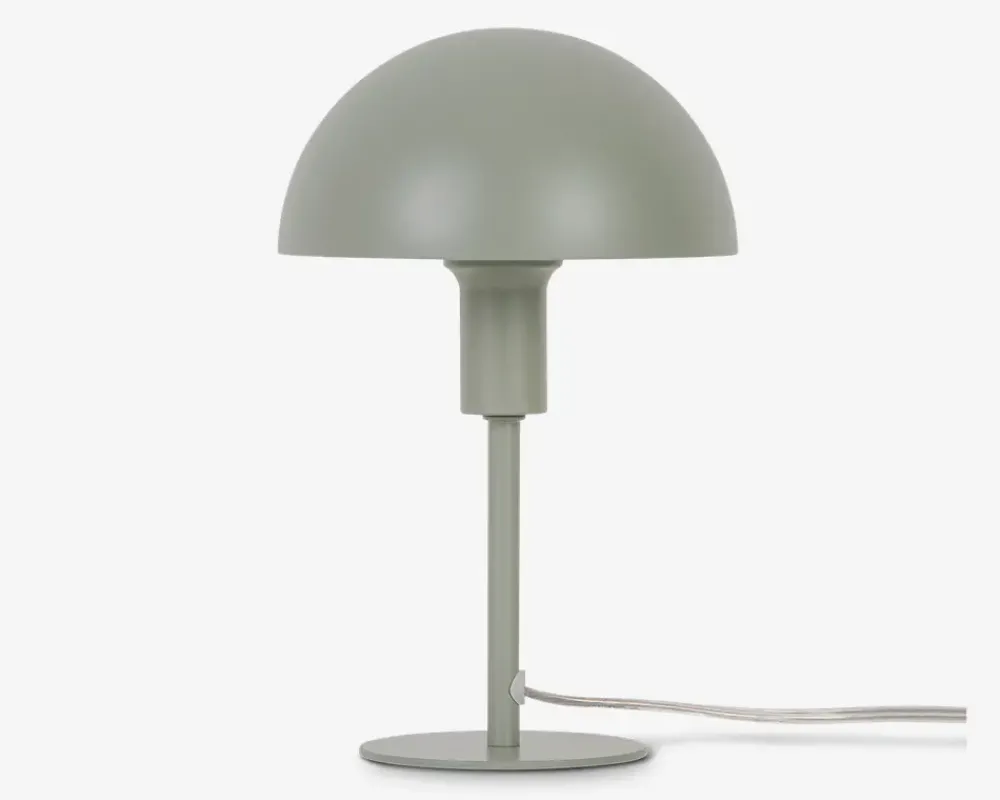 Ellen Mini er en bordlampe i plast og metal med højde på 25 cm. Lampen bruger en E14 fatning og har et enkelt design, der passer ind i mange hjem. Den kompakte størrelse gør den ideel til sengebordet, skrivebordet eller som en dekorativ lyskilde i stuen. Perfekt til at skabe en hyggelig belysning i hverdagen.