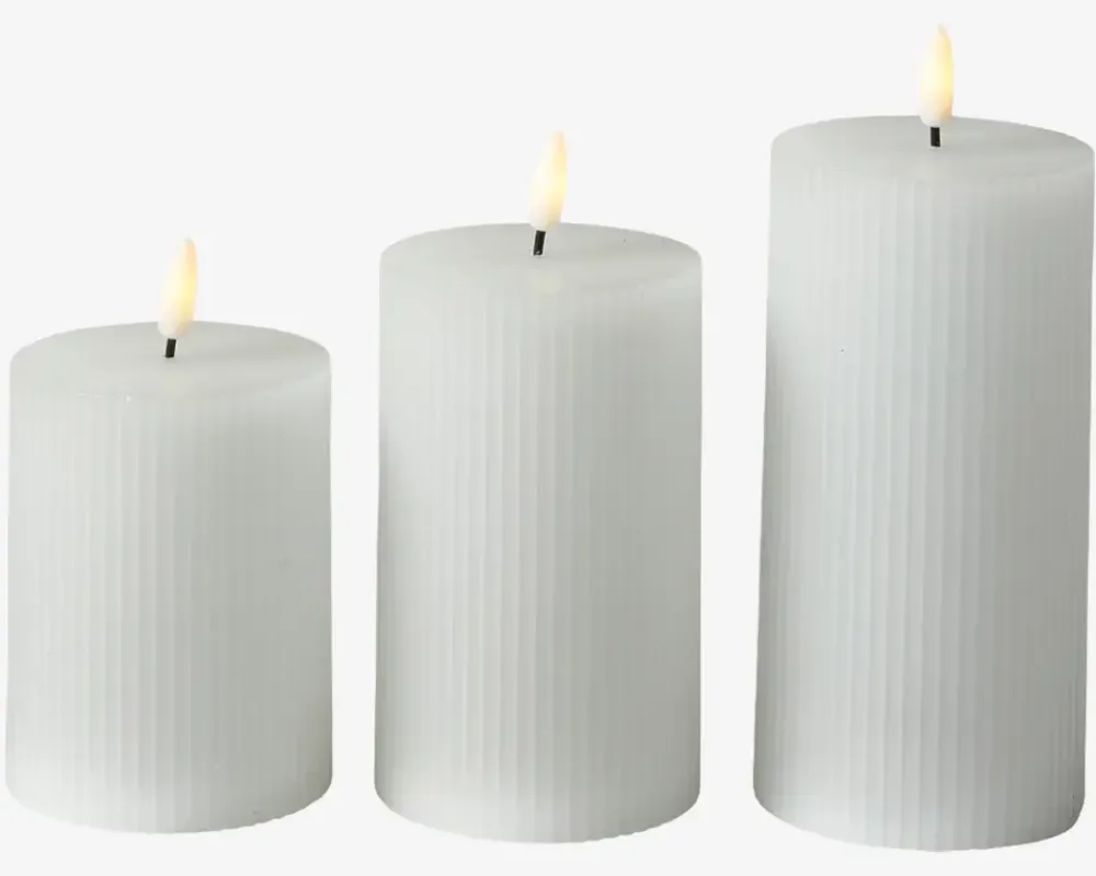 New Daells Bolighus LED Bloklys Sæt 3Stk M.Riller Hvid