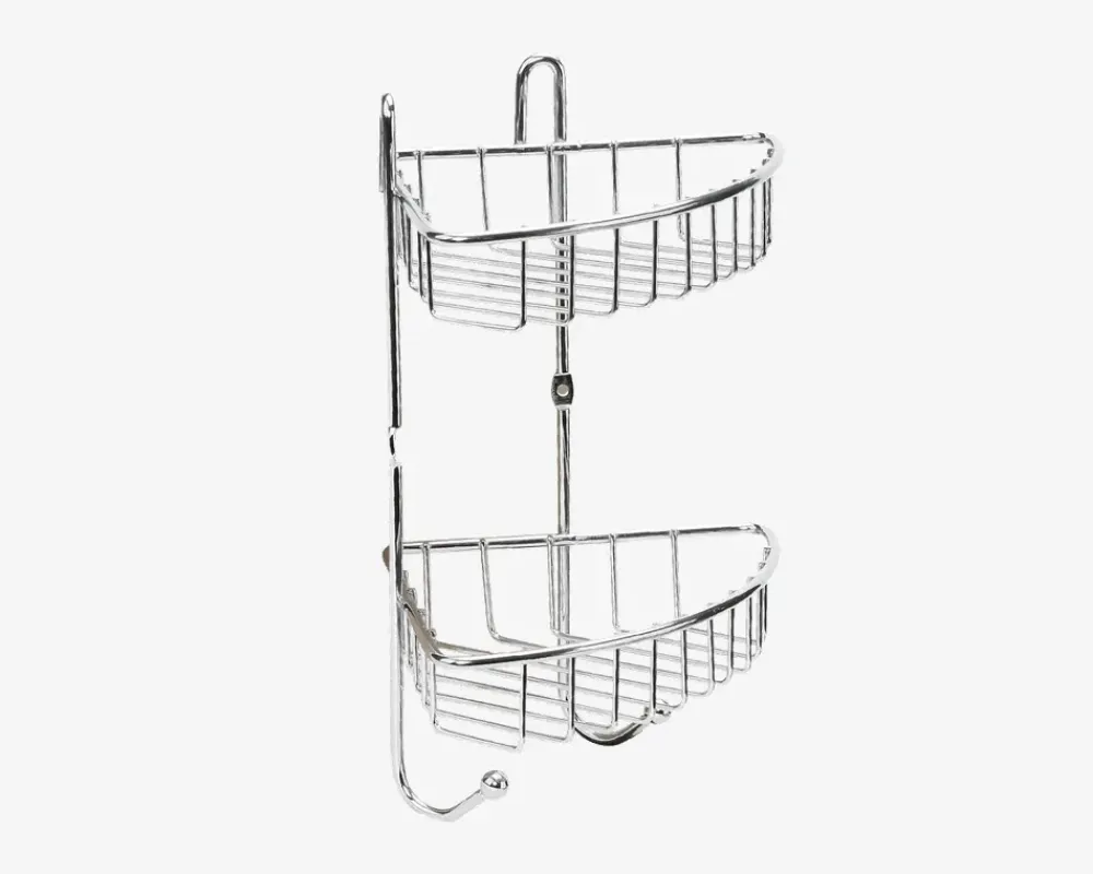 Det kan være svært at vide, hvor man skal gøre af shampoo, balsam og meget andet når man står med sæbe i håret. Med denne praktiske dobbelt brusekurv får du mere opbevaringsplads i brusekabinen til diverse badesæber. Under den sidste hylde er der to knager som også skaber mere opbevaringsplads i bruseren. Hylden er udført i stål med kromlook og leveres inkl. skruer og plugs.