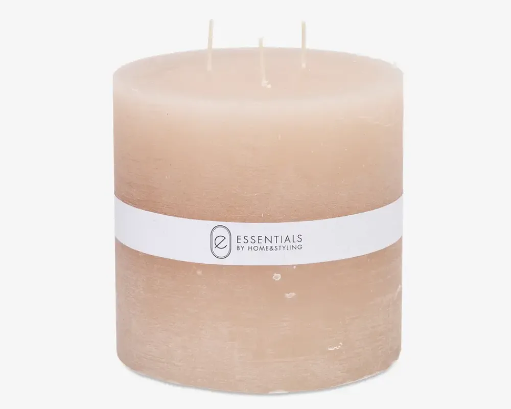 Stearinlys med tre væger der skaber en hyggelig stemning i hjemmet. Lyset måler 14×14 cm og giver et flot og roligt lys. Med sit enkle design passer lyset perfekt til både hverdag og særlige lejligheder. Det kan placeres alene eller som en del af en dekorativ opstilling. Kan brænde i op til 75 timer.