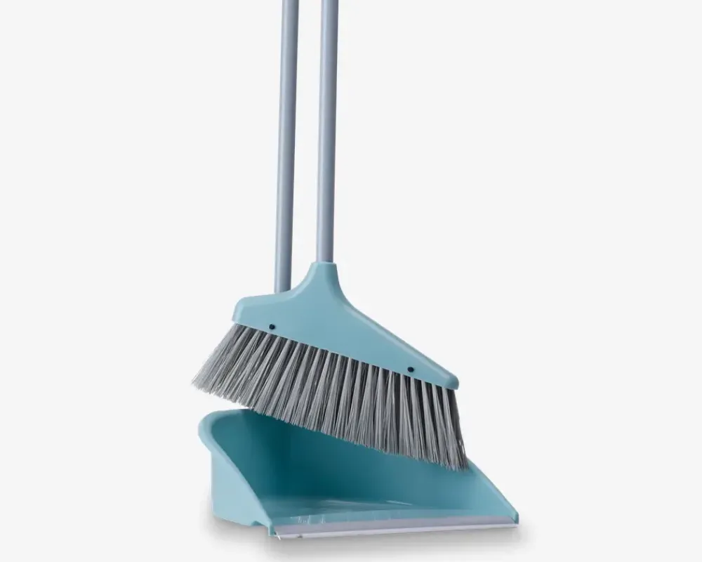 Fejebakkesæt med skaft der har en højde på 83 cm der kommer i assorterede farver. Fejebakken er udstyret med en gummikant, der gør det lettere at få skidtet fejet op på bladet. BEMÆRK, at der ikke kan vælges farve ved køb i webshoppen.