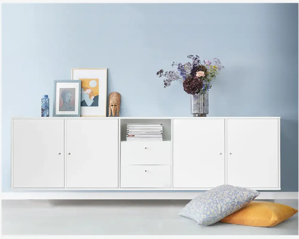 Den kendte reol Mistral reol, produceret af Hammel Møbelfabrik i Danmark. Kvaliteten er helt i top. Reolen kan kombineres helt efter eget ønske. Fås i mange farver og træsorter. Kom ind i butikken og se vores kæmpe udstillinger hvor vores sælgere står klar til at hjælpe jer med at sammensætte præcis den reol der passer til dig. Som noget helt nyt lagerfører vi nu enkelte opstillinger, som sælges til ekstraordinære faste lave priser. Her er et reolmodul i 5 sektioner med 4 døre og 2 skuffer i snehvid. Dette modul kan hænges på væggen eller der kan tilkøbes ben så det kan stå på gulvet. Gå ind på deres tegneprogram, hvor du kan sidde og lege med din nye reol.• Mistral reol i 5 sektioner• Produceret i Danmark• Kvaliteten er i top• Hvidlakeret• Leveres samlet. Kun døre og skuffer skal monteres• Mål i cm. B. 219,8 x D. 42 x H. 60,8