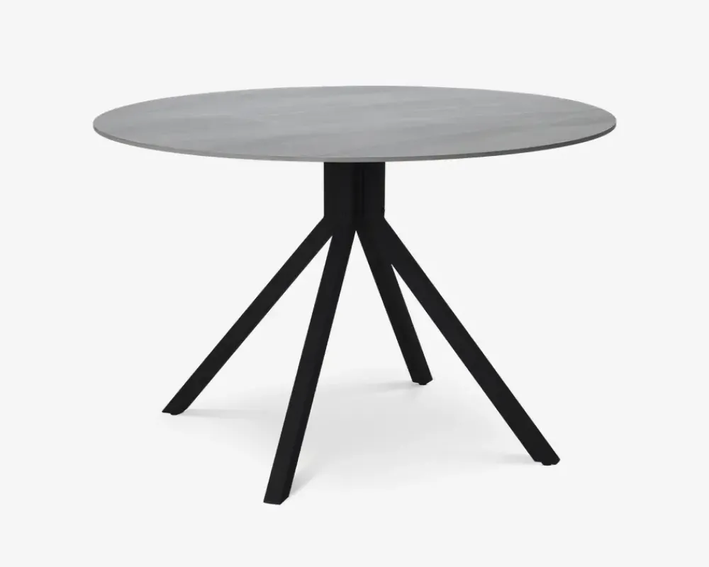 Her har du et robust og smukt spisebord fremstillet i sintret sten. Sintret sten er et kunstig fremstillet produkt af naturmaterialer som er presset sammen og brændt ved meget høj varme. Det giver en mere ensartet overflade end ægte marmor, og derudover for du en overflade som både er hårdere, mere ridse og slagfast.Dette spisebord er fremstillet med en bordplade i grå, og stel i sortlakeret stål. Bordet måler Ø. 120 cm. Det giver 4 gode spisepladser, men i det vil være muligt at sidde 6, hvis I klemmer jer lidt sammen. Et rundt bord er både moderne, og giver mulighed for at indrette køkken eller spisestue på nye måder.Bordet kræver ingen vedligeholdelse og rengøringen foretages med en klud vredet op i rent vand.Spisebordet leveres usamlet, og vi anbefaler på grund af vægten at I er 2 når bordet skal samles eller flyttes. Brug filtdupper på fødderne, så ikke du får ridset gulvet.
