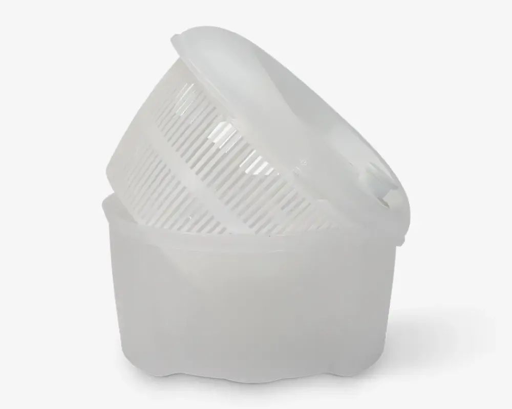 Salatslynge er en praktisk tilføjelse til køkkenet. Skyl salaten og brug salatslyngen til hurtigt og nemt at få bladene tørre.