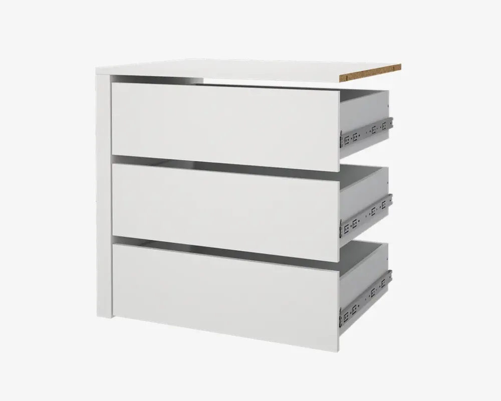 Hvis du ønsker at optimerer indretningen af dit Casa garderobeskab, er det muligt at tilkøbe denne indbygningsskuffeindsats. Skufferne kan bygges ind i begge de yderste rum af Casa skabet som måler 244 cm. i bredden, du skal blot beslutte hvilken side du ønsker at det skal sidde, før du begynder at samle det. Skuffe indsatsen indeholder 3 skuffer.Hver skuffe måler H. 12,7 x B. 61,65 x D. 43,6 cm, og må maks. belastes med 9 kg.