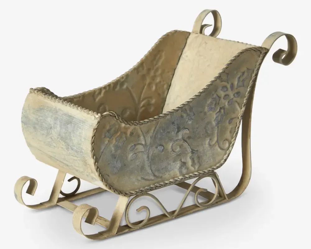 Dekorativ slæde i grå der måler H.13 cm. Den passer perfekt på reolen, i vindueskarmen eller som del af et nisselandskab. Slædens enkle udtryk i zink tilfører et rustikt og hyggeligt præg til dit hjem.