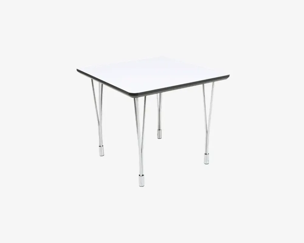 Shape®. Byg selv dit sofabord. Sofaborde i et moderne tidløst design.Du kan selv sammensætte dit sofabord som du vil. Shape® har valgfri bordplade hvor du selv kan vælge mellem massive bordplader i massiv eg eller bøg ubehandlet. Kan også fås i olieret eg eller i røget eg. Eller vælg bordplader med laminat overflader, som enten har en sort kant eller en synlig krydsfiners kant. Det giver bordet et meget moderne look. Der kan frit vælges mellem 3 trådsben, sorte træben-med eller uden alufarvet ”kappe” eller massive ben i ubehandlet bøg eller eg. Ben kan også vælges i olieret eg eller i røget eg. Her vist som sofabord i hvid laminat med sort kant og 3 trådsben i metal. Se iøvrigt prislisten herunder for yderligere information.• Skrå massive ben eller metalben• Massive bordplader eller laminat overflade• Moderne og tidløst design• Leveres usamlet men samles let• Mål i cm: L.55 x B.55 x H.48