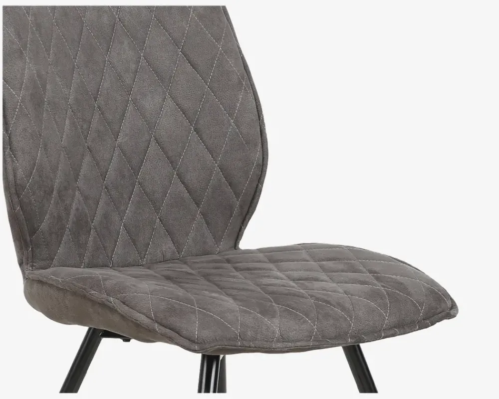 Spisebordsstol i kraftig antracit farvet mikrofiber, med en fantastisk siddekomfort. Stolen tilbyder med sin kraftige polstring, bløde stof og høje ryg, en virkelig god siddekomfort, som du vil glæde dig over når middagen bliver ekstra hyggelig og trækker ud. Spisestuestolen sælges i pakker af 2 stk., og det klassiske design, gør den velegnet til eksempelvis langborde som er oppe i tiden, når det gælder om at indrette køkkenet eller spisestuen.Spisebordsstolen kræver ingen vedligeholdelse, du du foretager rengøringen med en klud vredet op i rent vand. Ingen spisestole er egnet til at du vipper på dem, det kan skade konstruktionen og ødelægge stole. Stolene leveres usamlet, men samles nemt, hvis du følger den vedlagte samlevejledning.
