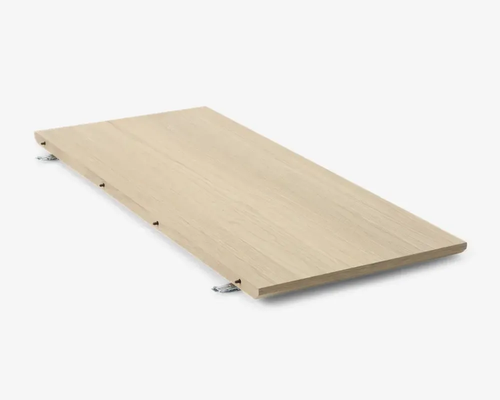 Tillægsplader til det Dansk produceret spisebord i massiv hvid olieret eg. Tillægspladerne er fremstillet i fineret hvid olieret eg, og sælges enkeltstyks. Hver tillægsplade måler B. 102 x L. 45 cm. Hvis du tilkøber 1 tillægsplade vil spisebordet udslået måle B. 102 x L. 187 cm, hvis du tilkøber 2 tillægsplader vil bordet udslået måle B. 102 x L. 277 cm. Tillægsplader er fremstillet i fineret eg.Tillægspladen er fremstillet i en meget høj kvalitet, og den hårde egetræ kombineret med hvid olie behandlingen, giver en stærk og holdbar overflade. Tillægspladerne er fremstillet i finer, af den simple årsag at massiv træ arbejder, og det er ikke hensigtsmæssigt for tillægsplader som skal passe i et spisebord. Tillægspladerne skal behandles på samme måde som det massive bord, dog vil tillægsplader som udgangspunkt ikke blive påvirket af solen, og derfor bør en gang om året være rigeligt. Du vil opleve at der opstår farveforskel på spisebord og tillægsplader, hvilket skyldes at spisebordet tager patina, og påvirkes mere end tillægspladerne. Når du behandler bordet vil du opleve at den farveforskel mindskes. Vi anbefaler altid at du behandler tillægspladen når du modtager den, dels for at sikre at overfladen er robust og klar til hverdags brug.Tillægspladen er fremstillet af Skovby Møbelfabrik i Danmark. Skovby er kendt for at producerer møbler i en høj kvalitet, og et flot klassisk design. Skovby har produceret kvalitetsmøbler til spisestuen siden 1933, møblerne udmærker sig ved at være fremstillet efter gamle håndværksmæssige traditioner, og i et tidsløst design, som gør møblerne aktuelle i dag og i fremtiden. Med et bord fra Skovby møbelfabrik har du desuden valgt et bord som vil holde sig flot og funktionelt i mange år fremover.