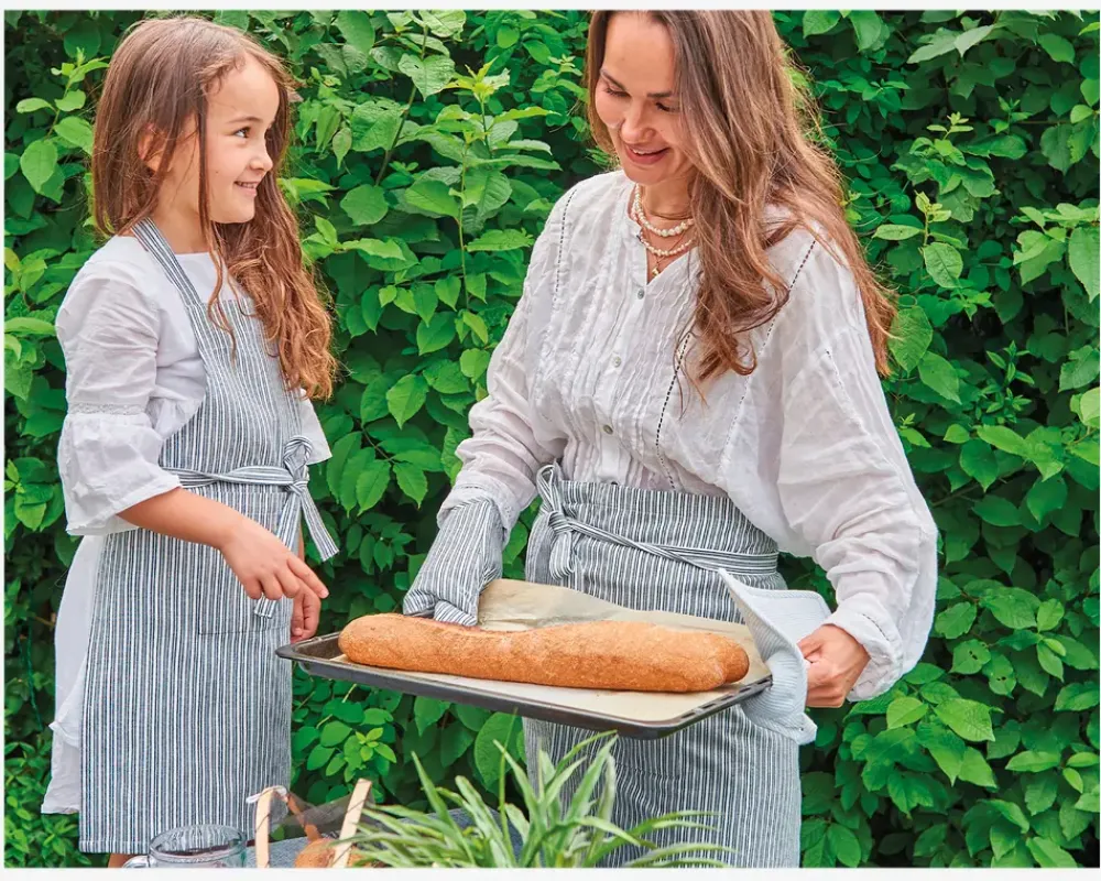 Praktisk børneforklæde i blå, perfekt til små hjælpere i køkkenet eller til kreative projekter. Forklædet har lomme foran, så der nemt kan opbevare redskaber, viskestykker eller små skatte undervejs. Lavet i bomuld, der er behageligt at have på.