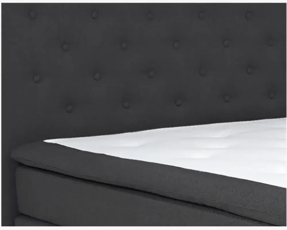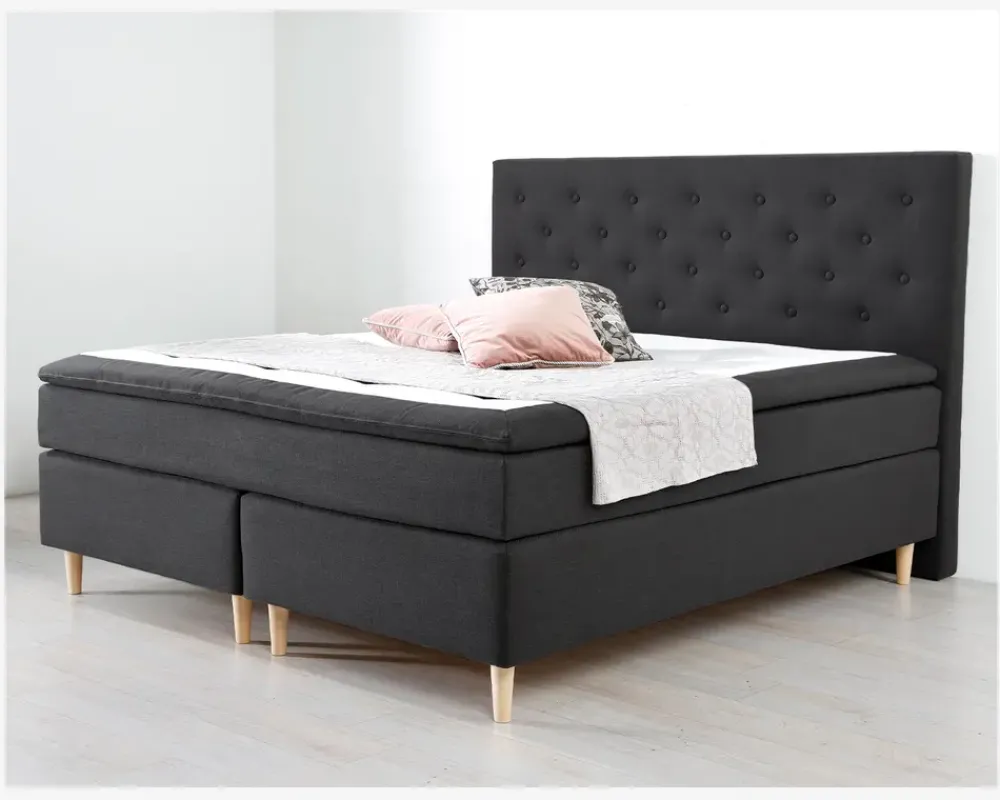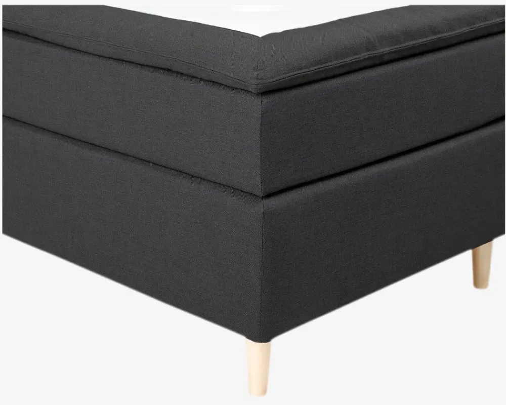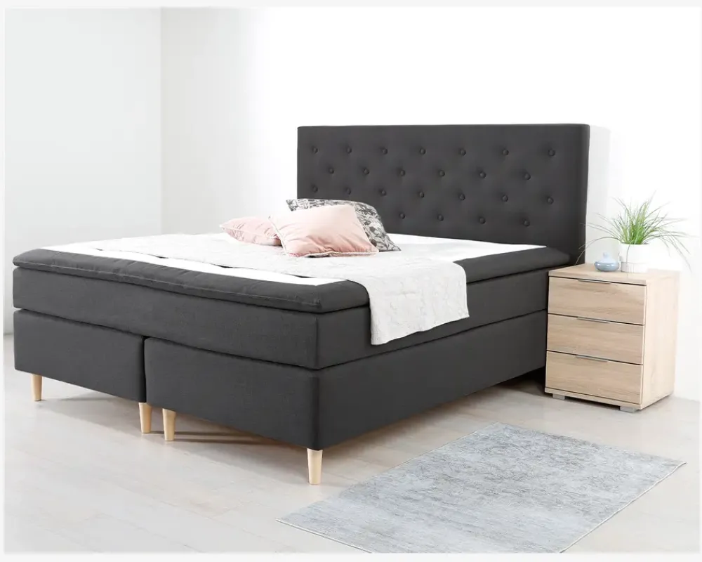 Komplet Continentalseng i et flot klassisk gråt betræk med ben i massiv oliebehandlet eg. Madras mål er 180 x 200 cm. Sengen består af 2 baser med et fjederindlæg med bonell fjedre. 1 springmadras i 180 x 200 cm med et posefjeder indlæg som er inddelt i 5 komfortzoner, til springmadrassen leveres et betræk. Topmadrassen består af en 34 kg. koldskums kerne quiltet med fibervat. Topmadrassen har nedtrækninger som sikre at fibervattet ligger fast, men det betyder også at vi kraftigt anbefaler at der benyttes en skånemadras som kan vaskes i maskinen ved 60°. Sengen leveres inkl. hovedgavl i gråt møbelstof, samt 2 sæt ben i massiv oliebehandlet eg.De 5 zoner i fjederindlægget vil understøtte din krop, og topmadrassen vil omfavne din krop, og hjælpe dig til at opnå den dybe rolige søvn, som igen vil hjælpe dig til at vågne frisk og veludhvilet hver morgen. Sengen har et flot udseende, og den klassiske grå farve vil stå rigtig flot i mange soveværelser.Sengen kræver som sådan ingen vedligeholdelse, og den daglige rengøring foretages med en støvsuger. Den øverste springmadras samt topmadrassen bør med jævne mellemrum vendes, dette vil både øge levetiden markant, ligesom det vil sikre din krop den bedst mulige støtte i hele madrassens levetid. Betrækket på topmadrassen kan ikke vaskes og vi anbefaler derfor at du benytter en skånemadras oven på topmadrassen, denne kan vaskes ved 60°, tåler at blive vasket mange gange. Derudover anbefaler vi at topmadrassen luftes udendørs nogle gange om året, dette afhjælpe eventuelle husstøvmider.• Giver en fantastisk liggekomfort• Nederste lag 105 bonell fjedre pr m²• Springmadras med 235 posefjedre pr m²• 5 komfortzoner• Topmadras med 40 mm koldskum. 34 kg.• Inkl. gavl og ben• Mål i cm. H. x B. x L.L 130 x 183 x 212• Madras mål i cm B. x L.: 180 x 200• Liggehøjde: 68 cm.• Polstring: 100% polyester• Leveres usamlet