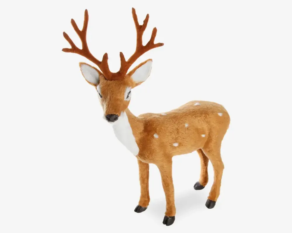 Dekorativ hjort med gevir i naturtro design. Figuren måler 23 cm i højden og 16 cm i bredden. Perfekt som i nisselandskabet eller som enkeltstående pynt på reolen, kommoden eller i vindueskarmen. Skaber et elegant og vinterligt udtryk i hjemmet.
