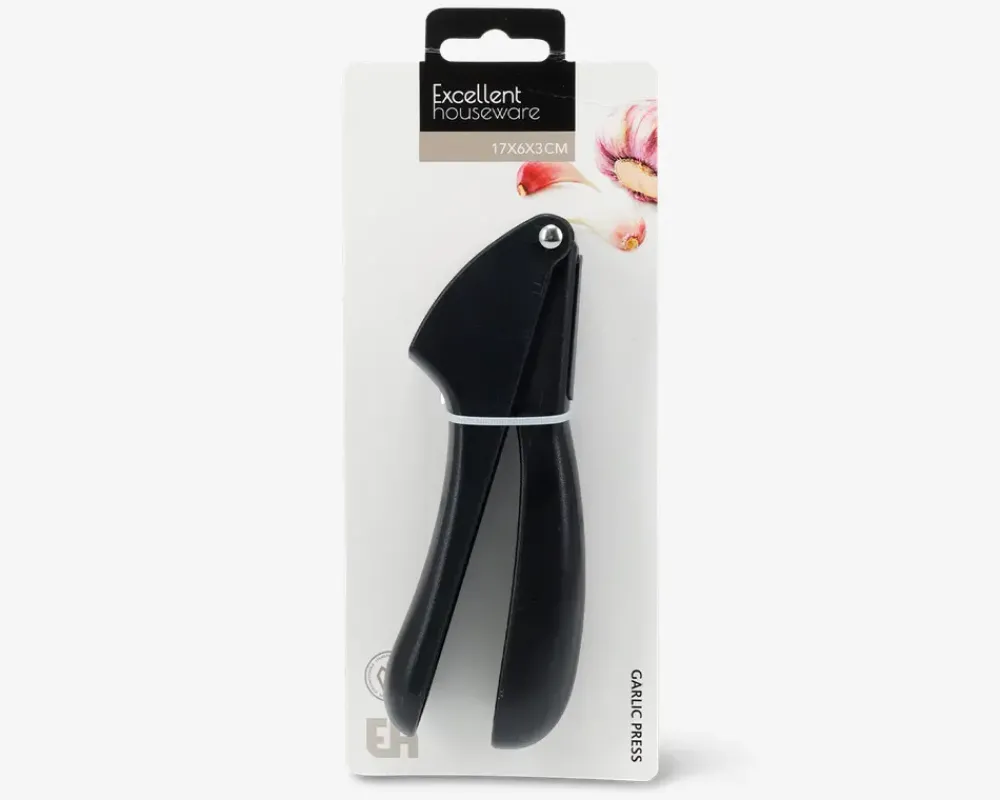 Denne hvidløgspresser i sort design er et must-have værktøj i ethvert køkken. Med sin ergonomiske konstruktion og stilrene farve gør den både hverdagsmadlavning nemmere og tilføjer et moderne touch til dit køkken. Hvidløgspresseren er designet til effektivt at presse hele fed hvidløg hurtigt og nemt, hvilket sparer tid og opvask. Den er fremstillet af holdbart materiale, hvilket gør den robust og langtidsholdbar, selv ved hyppig brug.Perfekt til dem, der elsker at tilføje frisk hvidløg til deres opskrifter, men ønsker en hurtig og praktisk måde at få det gjort på. Den er nem at rengøre og kan anvendes til både små og store fed hvidløg.
