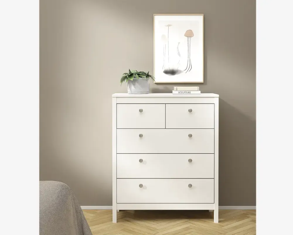 Outlet Daells Bolighus Kommode Madrid med 5 skuffer hvid