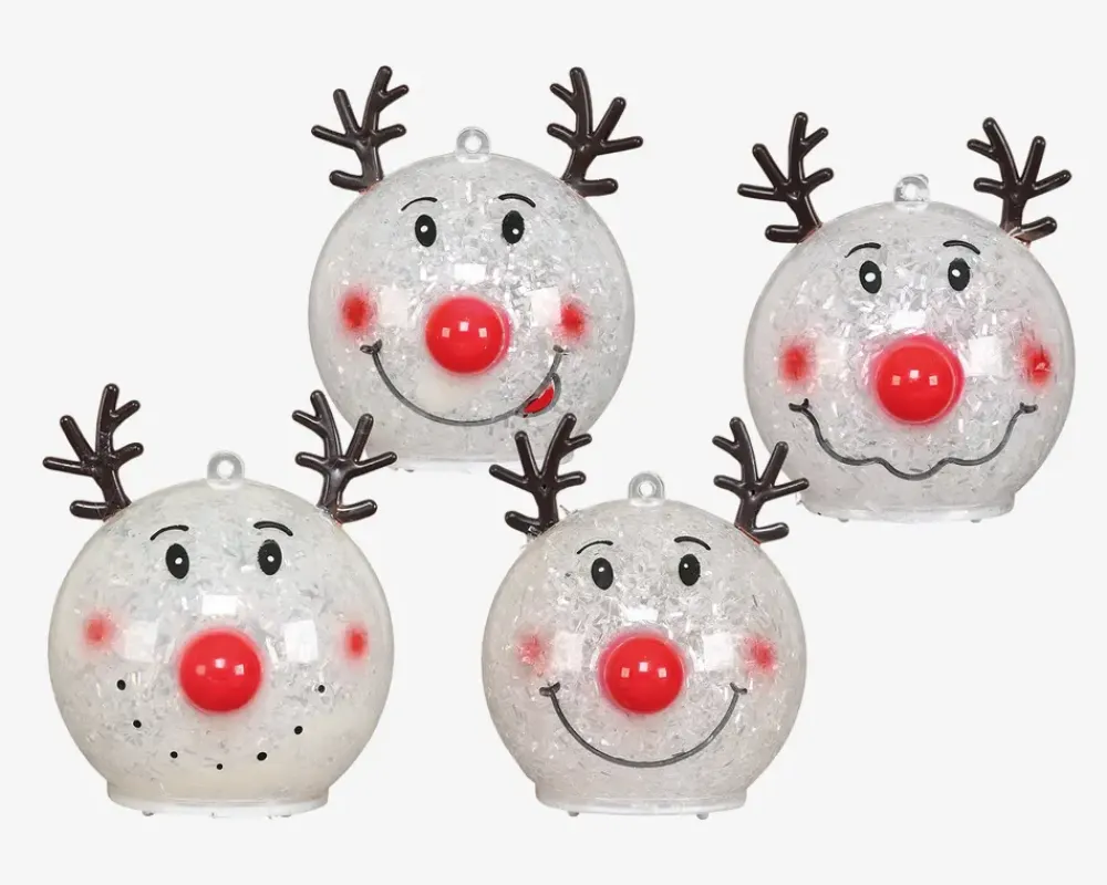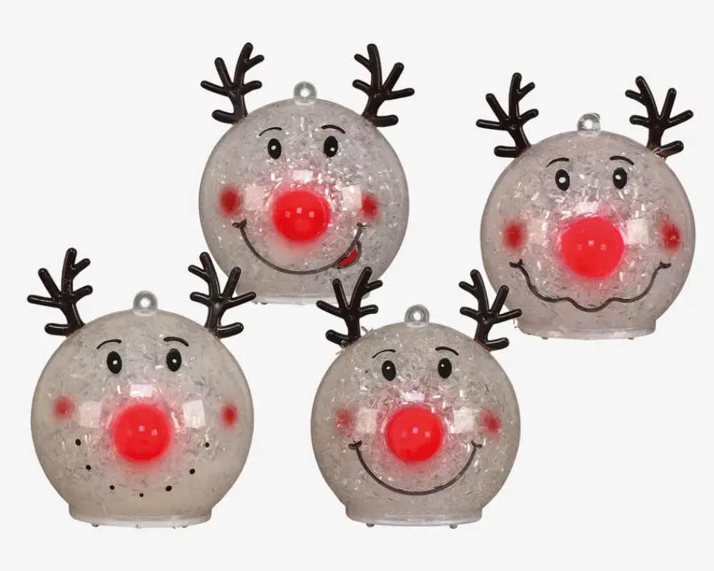 Denne kugle med LED, der forestiller Rudolf, er en charmerende og festlig tilføjelse til din juleudsmykning. Kuglen er lavet af holdbar akryl og har en indbygget LED-lyskilde, der skaber en varm og stemningsfuld belysning. Kuglen er designet med en praktisk snor, der gør det nemt at hænge den op, enten på juletræet, i vinduet eller andre steder i dit hjem. Bemærk, at de kommer assorteret, købes enkeltvis og at der ikke kan vælges model ved køb i webshoppen.• Mål i cm: Ø.8• Batteri: 3x LR44, inkl.