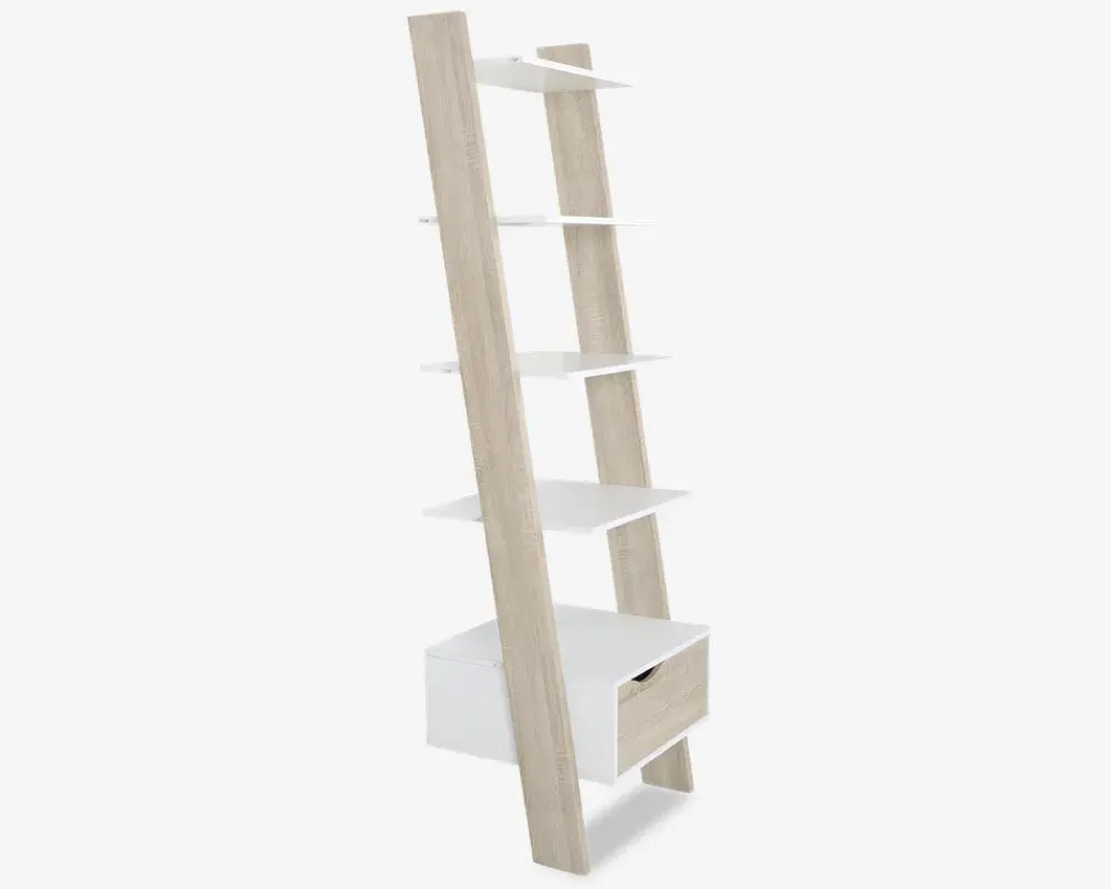 Smart skråreol i et let og elegant design. Hylder i hvid og vanger i eg kunstfiner. Den flotte farvekombination gør at det kan passe ind alle steder. I stuen, på børneværelset, ja alle steder hvor der er behov for lidt afsætningsplads. Leveres usamlet, men samles let.Reolen er en del af en stor serie af møbler, som har et moderne og smart udtryk, serien er fremstillet i rengøringsvenlige materialer, og kan både som enkelt møbel og som serie stå som et frisk pust til indretningen. Se hele det store udvalg af Delta møbler her eller i en af vores møbelhuse.• Let og elegant design• 1 stor skuffe• Rengøringsvenlige materialer• Leveres usamlet men samles let• Mål i cm. H.180 x B.55 x D.48