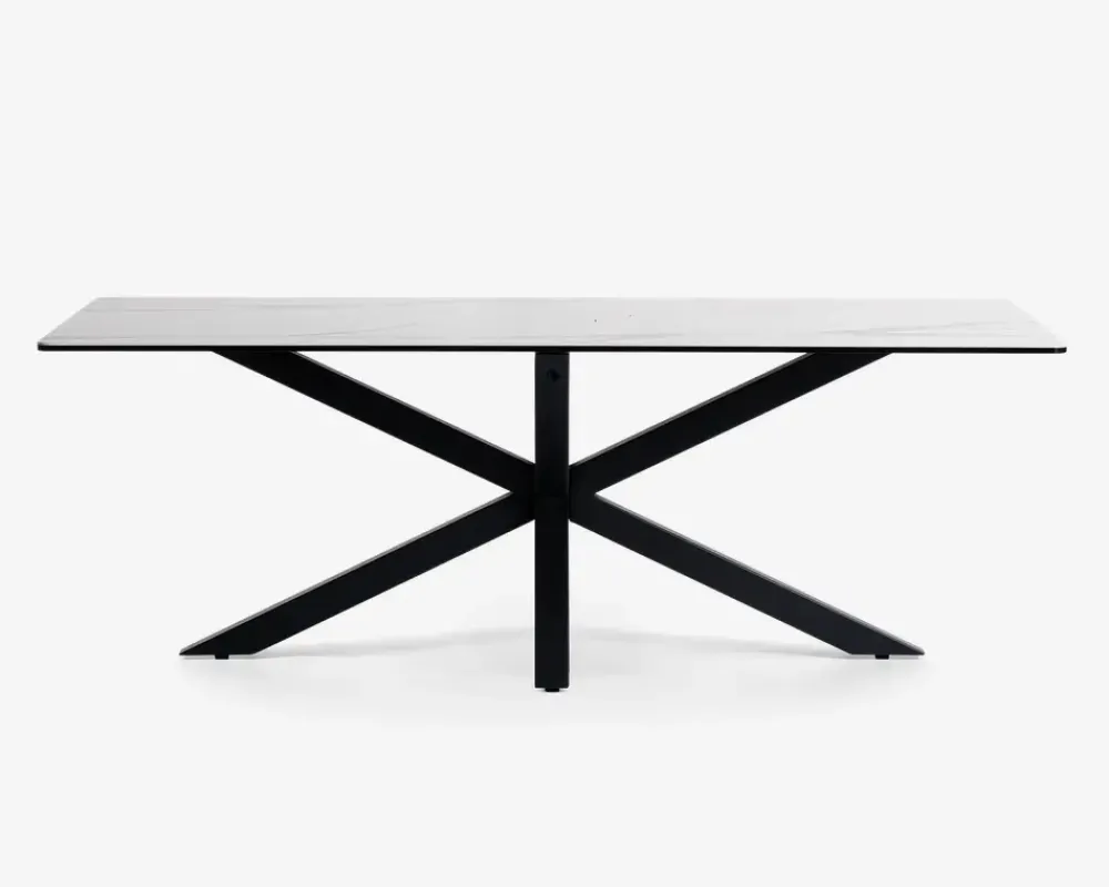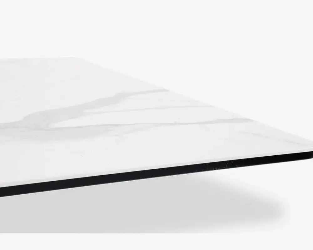 Elegant og moderne sofabord med glasplade som har en overflade som er lavet af keramik i hvid. Det har den fordel at bordet er meget modstandsdygtig overfor varme og væsker. Det er næsten umuligt at ridse og så kræver det ingen vedligeholdelse. Man tørrer blot bordet af med en opvredet klud. Og som en sidegevinst er det et naturprodukt som er 100% genanvendeligt. Bordet har et smart understel som er med til at give bordet det moderne udtryk. Stellet er sortlakeret metal. Der findes også et spisebord som har samme type bordplade og understel. Bordet leveres usamlet, men samles nemt.• Elegant og moderne sofabord• Glasplade med keramik overflade• Sortlakeret metalstel• Modstandsdygtig overfor varme og væsker• Leveres usamlet, men samles nemt• Mål i cm. L.130 x B.70 x H.45