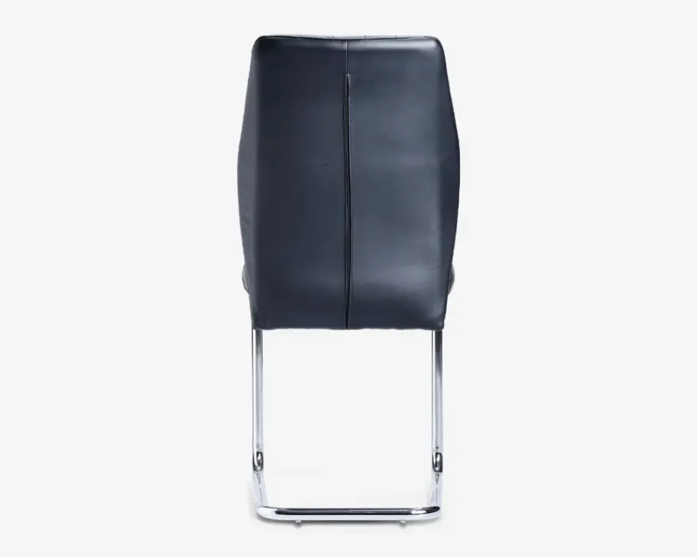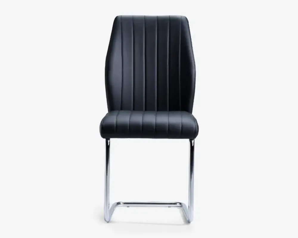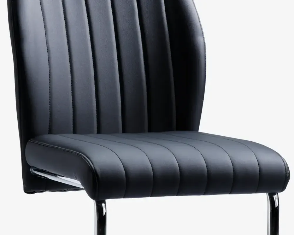 Spisebordsstol med en god og behagelig siddekomfort, fremstillet i rengøringsvenlige materialer. Stolens kraftige polstring gør stolen dejlig blød at sidde i, selv under de lange middagsselskaber med familien. Det velkendte swing stel har i mange år, været anerkendt for sin behagelige og gyngende siddekomfort, som gør spisestolen behagelig og afslappende at sidde i.Stolens betræk i sort kunstlæder er nemt at rengøre, du behøves bare en klud vredet op i rent vand, der må ikke benyttes plejemidler. Stellet er krom men findes også i sort, så du vil nemt kunne finde en spisebordsstol som passer i den udgave du ønsker.
