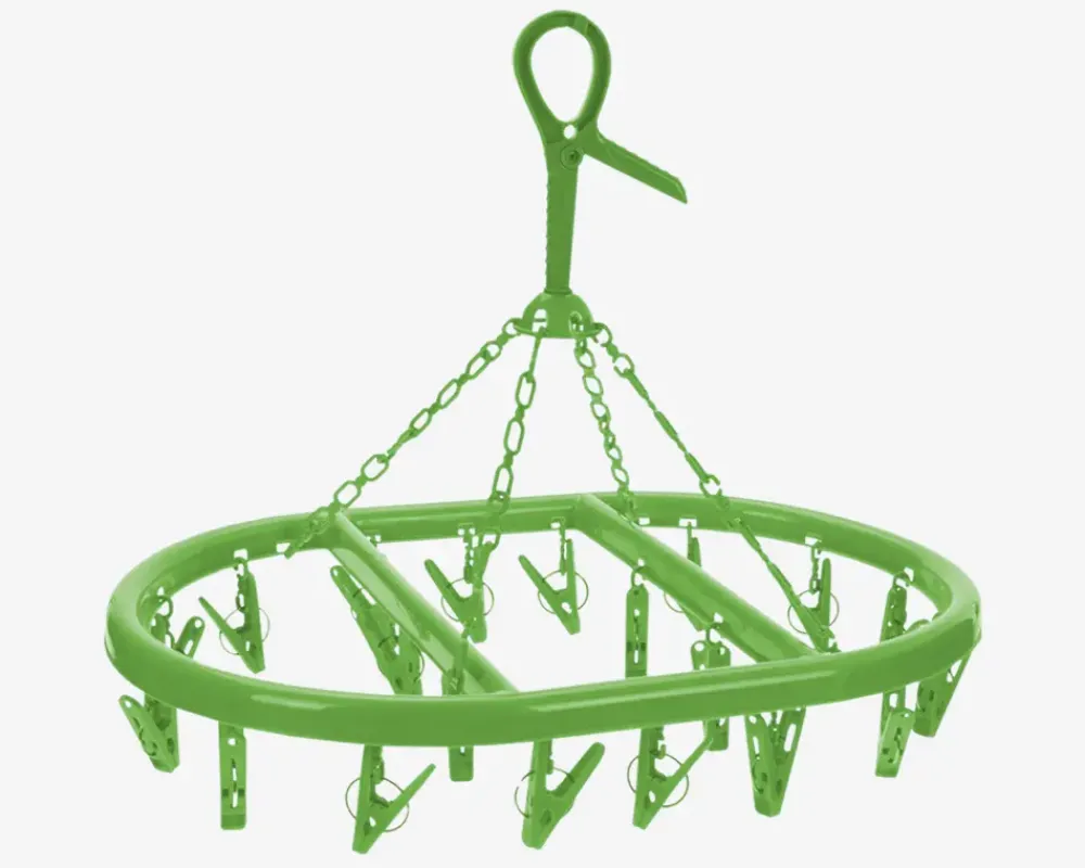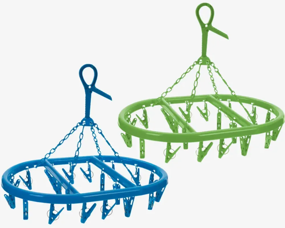 Praktisk tørrestativ der er udstyret med 20 klemmer og er en smart løsning til at tørre dit vasketøj. Det kan nemt hænges op, hvilket gør det ideelt til at spare plads og organisere dit vasketøj på en effektiv måde.Bemærk at de kommer assorteret, købes enkeltvis og at der ikke kan vælges farve ved køb i webshoppen.• Mål i cm: L.50 x B.33