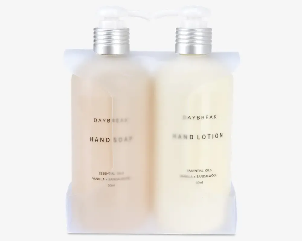Giv dine hænder den pleje, de fortjener, med dette håndplejesæt bestående af sæbe og lotion. Sæben renser skånsomt, mens lotionen tilfører fugt og efterlader hænderne bløde og velplejede. Fås i forskellige duftvarianter, så du kan finde din favorit. Perfekt til daglig brug og en fin detalje på badeværelset eller i køkkenet!Bemærk, at der ikke kan vælges duft ved køb i webshoppen.