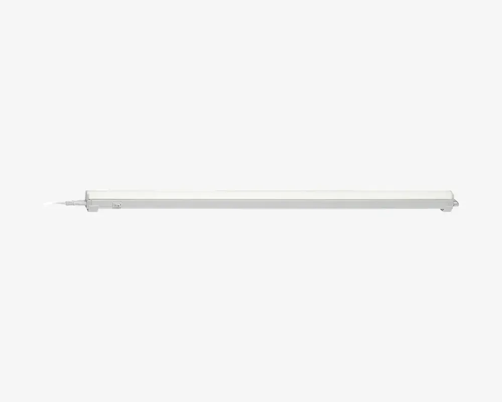 Lysarmatur med indbygget LED der er nem at montere på for eksempel underskabe eller i klædeskabet. Dette er en praktisk løsning, der samtidig skaber en god belysning i hjemmet. Armaturet kan nemt forlænges ved køb af flere armaturer. • Mål i cm: L.87,8• Farve: hvid• Materiale: plast • Lyskilde: LED integreret, 12 watt • Lumen: 900• Kelvin: 3000• Ledningslængde: 100 cm