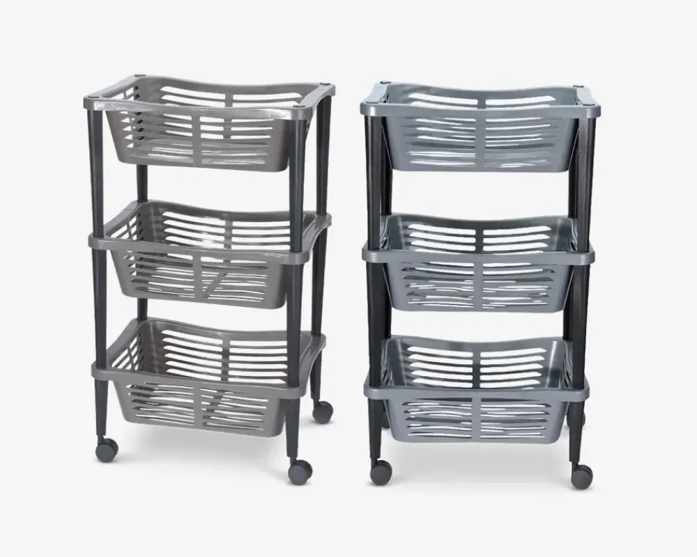 Hold dit hjem eller kontor organiseret med denne alsidige opbevaringsvogn med tre rummelige kurve. Vognen er fremstillet af robust plast og monteret på hjul for nem mobilitet. Perfekt til opbevaring af alt fra køkkenartikler og rengøringsprodukter til legetøj og kontorartikler.Bemærk at de kommer assorteret, købes enkeltvis og at der ikke kan vælges farve ved køb i webshoppen.
