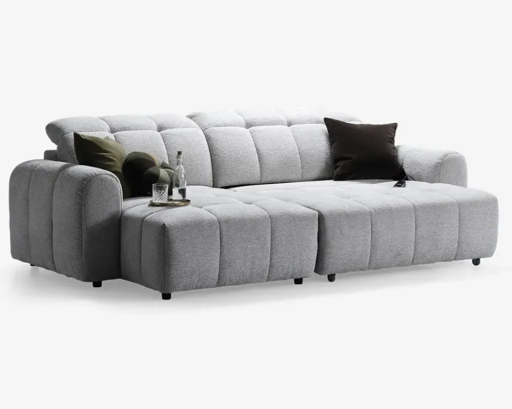 Denne lækre sofa er en rigtig flyder. Med sit elbetjente sæde der kan køres frem og tilbage får man en sofa der virkelig indbyder til hygge med et tæppe og en kop kaffe. Sofaen har en stor chaiselong på 90 cm og den er monteret med blødt og slidstærk møbelstof. I sædehynderne har sofaen en fast og formstabil polyetherskum som er understøttet af nozag fjedre. Dette giver en rigtig dejlig siddekomfort. Sofaen har ydermere justerbare nakkestøtter som er med til at give den gode siddekomfort. Sofaen her er venstrevendt og kan også bestilles højrevendt.• Blødt og lækkert møbelstof• Stor chaiselong på 90 cm• Fast og formstabilt polyether skum i sæde• Med justerbare nakkestøtter• Mål i cm: L. 264 x D. 159 x H.43/98