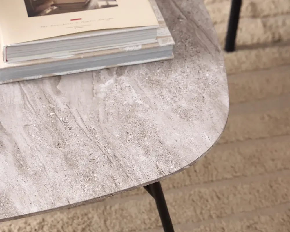 Elegant og moderne rundt sofabord med en melamin overflade i marmorprint, så man næsten ikke kan se forskel. Melamin overfladen giver dette bord en meget stærk overflade. Ridse og slagfast og så kræver overfladen ingen vedligeholdelse. Alt man behøver er at støve af med en hårdt opvredet klud med rent vand. Bordet har et flot sort lakerede metalben.• Elegant og moderne sofabord• Melamin overflade med marmorprint• Sortlakeret metalstel• Leveres usamlet, men samles nemt• Mål i cm. L. 90 x B. 90 x H. 40