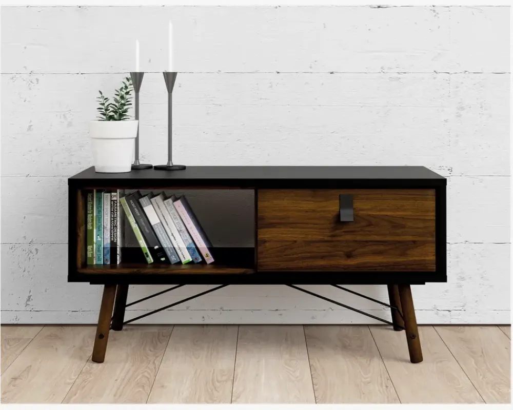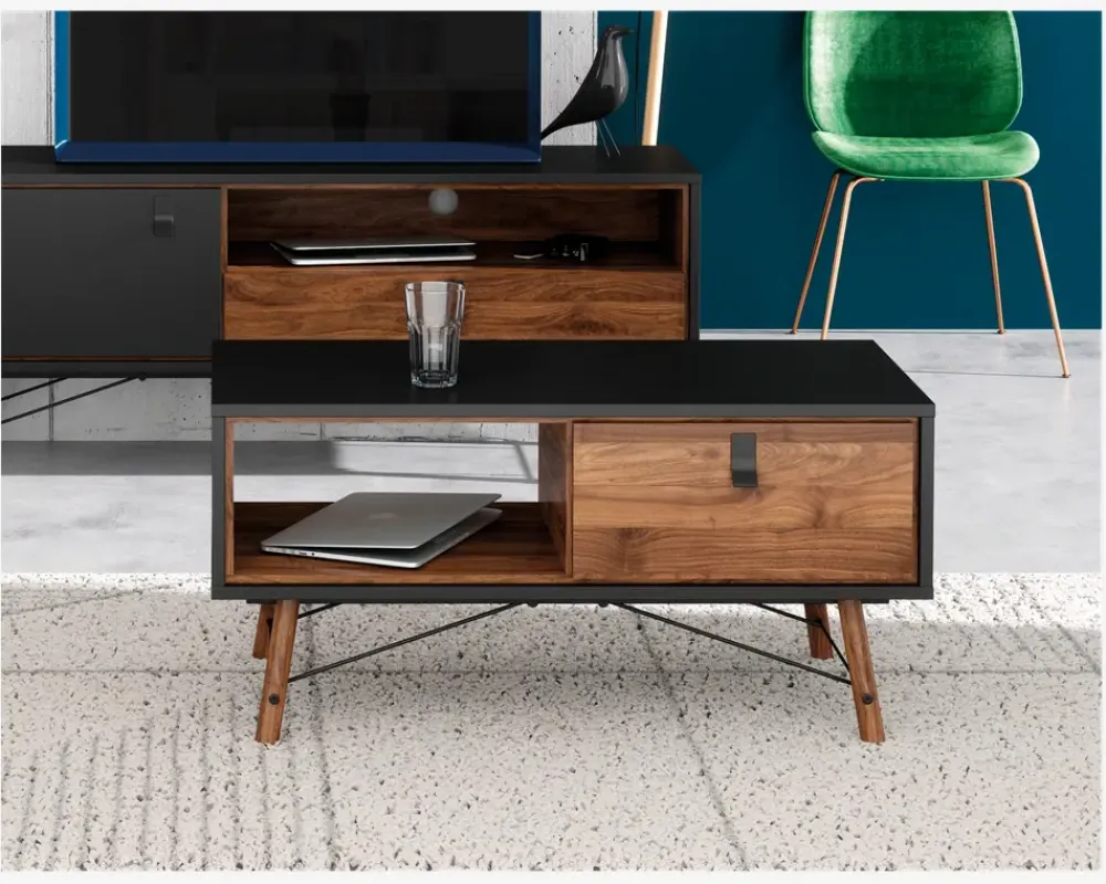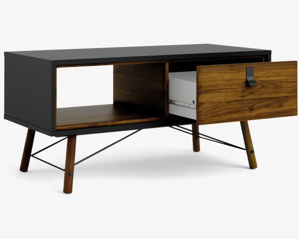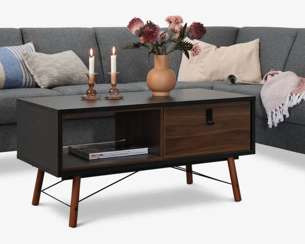 Smart og moderne designet sofabord med mange flotte detaljer. Sofabordet har en skuffe og en åbning, hvilket giver rigtig meget opbevaringsplads. Sofabordet er fremstillet i kunstfiner som er meget rengøringsvenligt. Tør blot af med en hårdt opvredet klud. Mere behøver man ikke. Ingen ekstra vedligeholdelse er nødvendig. Leveres i flere farvekombinationer. Sofabordet leveres usamlet, men samles nemt. • Smart og moderne sofabord• Stor skuffe og åbning til opbevaring• Meget rengøringsvenligt.• Leveres usamlet, men samles nemt• Mål i cm. L.102 x H.50 x D.48