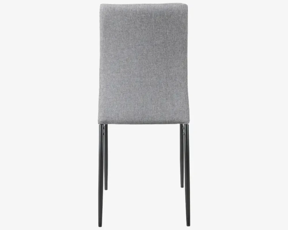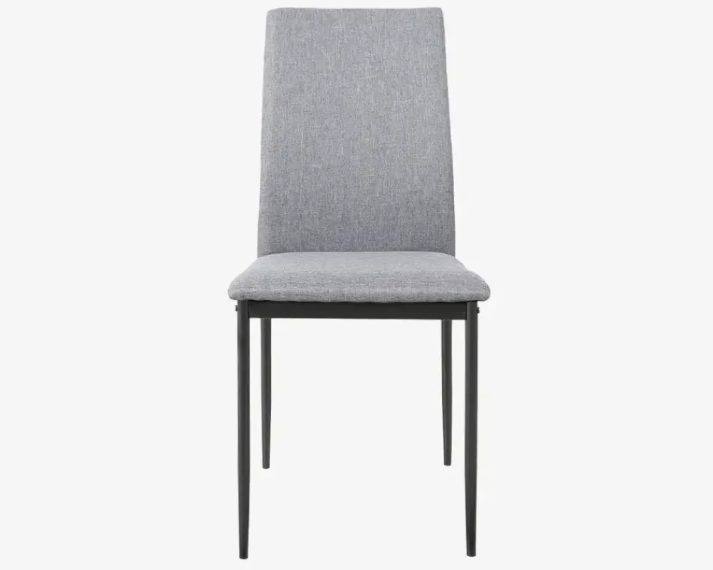 Her har du en god prisrigtig spisebordsstol i gråt møbelstof med sort stel. Selv om spisestuestolen er billig får du her en stol med en god siddekomfort. Spisestuestolen er fremstillet i et let design, som passer sammen med en lang række af vores spiseborde.Spisebordsstolen sælges i pakker af 4 stk., og den leveres usamlet. Spisestolen samles let hvis du følger den vedlagte samlevejledning, det er vigtigt at du ikke fastspænder de enkelte skruer, før alle skruer er sat i. Det både letter samlingen, og samtidig kan du rette stolen og derved undgå at den vipper. Stolen kræver ingen vedligeholdelse, og rengøres let med en klud vredet op i rent vand.