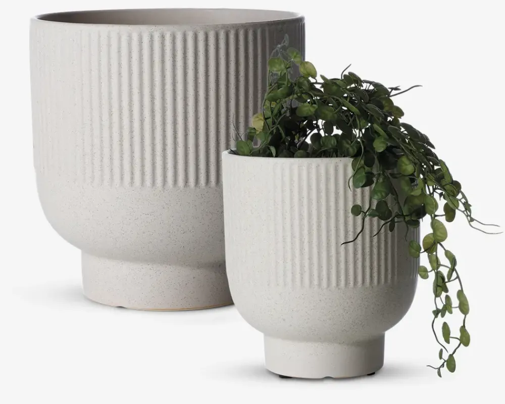 Urtepotteskjuler sæt med 2 stk. i keramik i farven River Cream. Sættet bestående af to potter med højderne 17 cm og 22 cm. Potterne har et enkelt og stilrent design, der passer til både blomster og grønne planter. Perfekt til at skabe en harmonisk og dekorativ stemning i hjemmet, på altanen eller som del af en samlet planteopstilling.